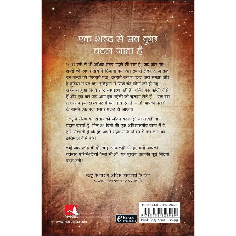 “Jadu” is the Hindi translation of Rhonda Byrne’s best-selling self-help guide The Magic. Through a transformative 28‑day journey, the book invites you to practice daily exercises centered around gratitude. Each day’s activity is designed to help you harness the power of thankfulness to improve your relationships, health, wealth, and overall outlook on life. Drawing on insights from both ancient texts and contemporary examples, Rhonda Byrne illustrates how gratitude can become a “magic,” reshaping your mindset and bringing more abundance into your world